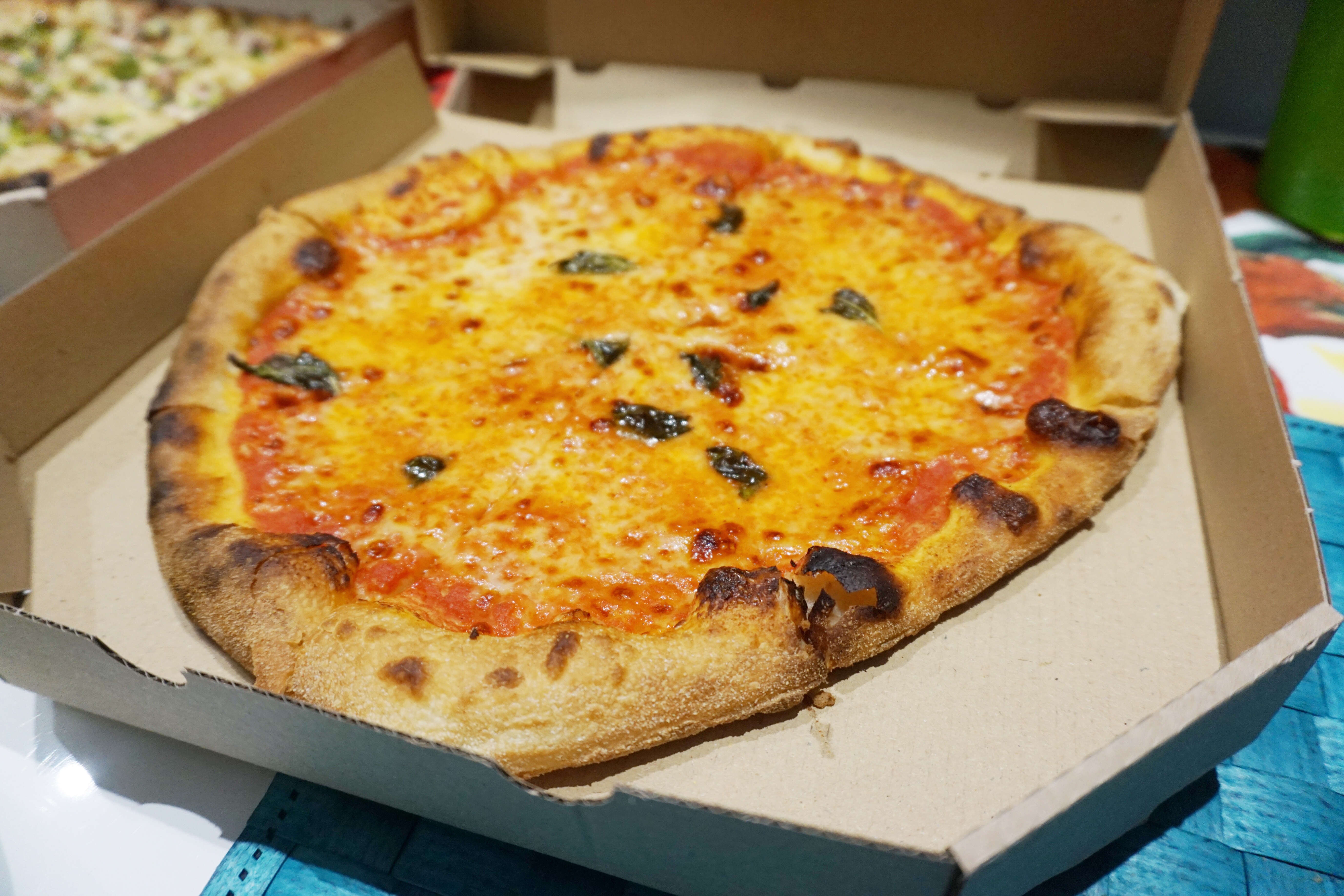 Margherita łączy w sobie to, co powinna – lekkość, cieniutkie ciasto, nieprzeszkadzający, lekko słodki sos i nieprzesadną ilość sera. Swoje robi także odpowiednio wypieczony placek – cienki w środkowej części, bardziej puszysty na rantach i z charakternymi, dostarczającymi delikatnie palonego aromatu fragmentami na zewnątrz.