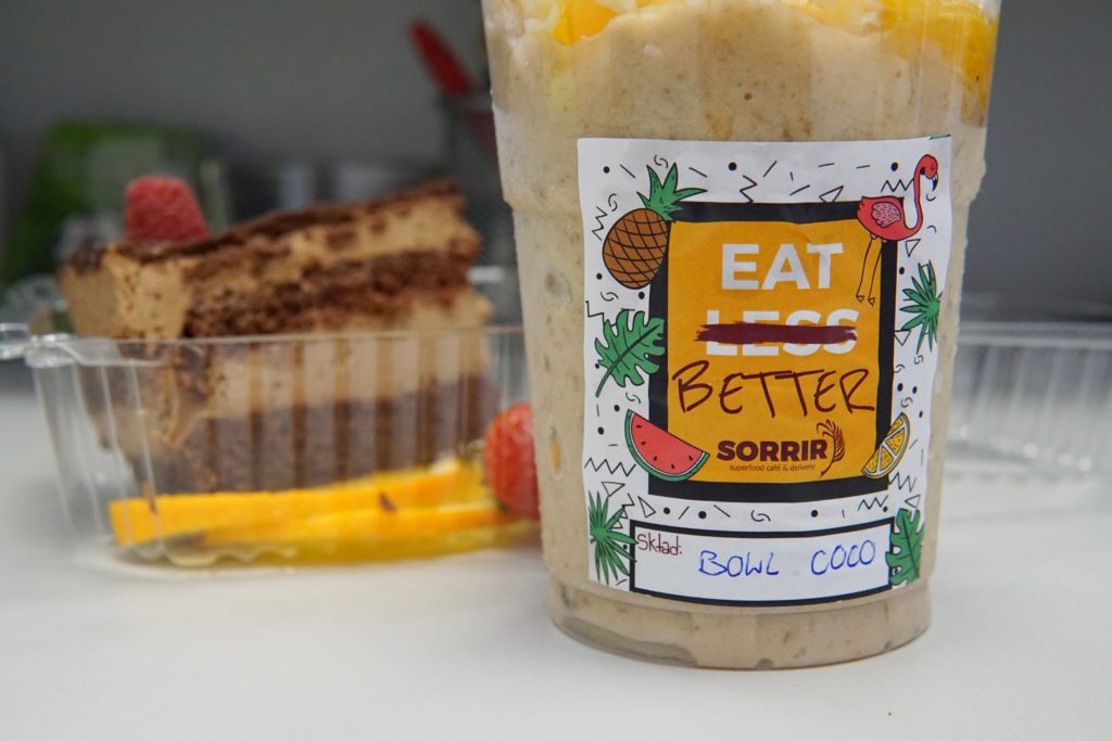 Z moich ostatnich eksperymentów, mam dla Was dwie opcje, które wybrałem do opisania. Obie znane już z łamów bloga, dlatego chętnie do nich wracam w razie potrzeby, bo wiem, że otrzymam produkt odpowiedniej jakości.  Na pierwszy ogień idzie Sorrir, a więc kawiarnia przygotowująca wegańskie, bez użycia cukru i glutenu, ciasta, desery oraz świetne owocowe napoje. Brzmi groźnie, zwłaszcza dla mięsożerców i zadeklarowanych przeciwników wszelkich wariacji na temat diet, natomiast mogę śmiało powiedzieć, że to jedno z bardziej interesujących miejsc, wyspecjalizowanych w tej tematyce. Sam też podśmiewam się z tych wszystkich trendi diet, wyłączając osoby faktycznie cierpiące z tego względu, ale tak jak lubię czasami zjeść wege lub wegańskie potrawy, tak samo ciekawi mnie, w jaki sposób pieczone są ciasta bezglutenowe choćby.