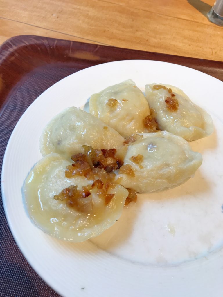 Pierogi ruskie, temat rzeka. Z dużą ilością pieprzu albo niemal bez, więcej ziemniaków w farszu, niż twarogu, więcej twarogu i cebulki, itd. Ile domów, tyle teorii na ten temat. Moje wymarzone ruskie to cieniutkie ciasto, przewaga twarogu i sporo pieprzu. Póki co wielu podobnych we Wrocławiu nie znalazłem, a w zdecydowanej przewadze są te kompletnie odmienne – niedoprawione, mocno ziemniaczane, z grubawym ciastem. Pewnym paradoksem jest, że na Rynku, gdzie mamy dwie pierogarnie i kilka lokali z tą potrawą, najlepsze ruskie można zjeść w… wegańskim barze. Tak, tak, moim mili. Vega Bar na parterze robi takie ruskie, że nawet wielki przeciwnik tofu, jakim jestem, nie jest w stanie wyczuć, że to właśnie ten produkt znajduje się w farszu. Idźcie, zjedzcie, bo jeśli kochacie pierogi, nie możecie przegapić takiej okazji.