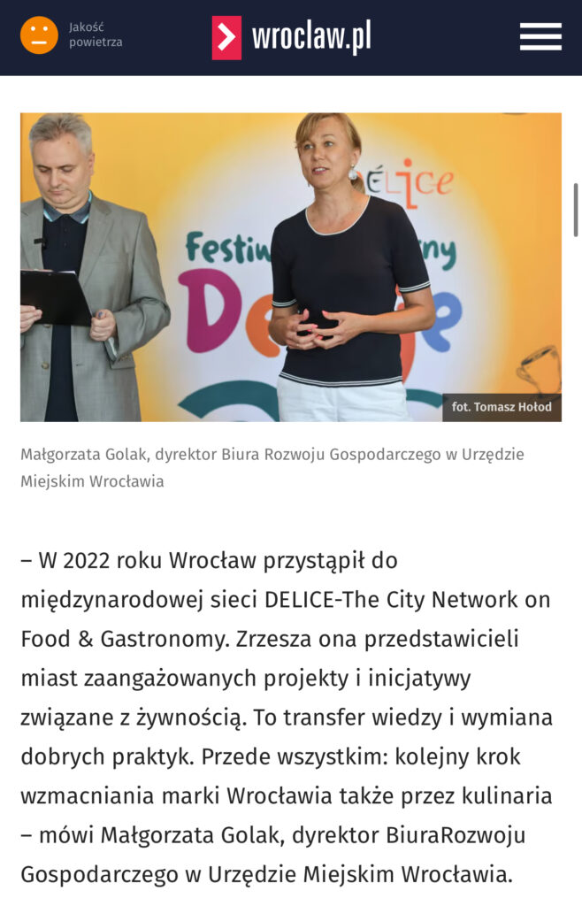 Pozwoliłem więc sobie zadać wtedy pytanie skierowane do osób zasiadających w Biurze promocji miasta Wrocławia, na co przemiła pani oddzwoniła do mnie, aby porozmawiać o postępach w lobbowaniu za Michelin. Finału tej rozmowy nie mógł się spodziewać nawet tak zażarły przeciwnik działań władz miasta, jak ja. Mianowicie pani Gosia zdaje się, powiedziała mi, że podjęto decyzję, aby nie przystępować do michelinowskiego wyścigu, a w zamian za to, ze względu na mniejsze finansowanie (konkretnie pada tu kwota 4000 euro) wejść w program Delice.